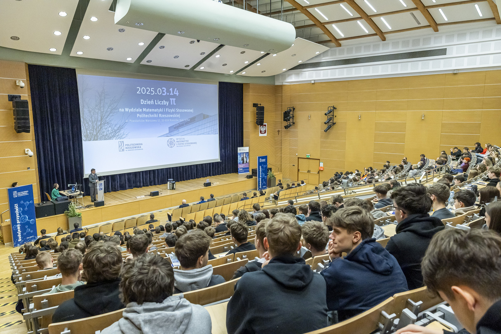 14 marca na całym świecie obchodzony jest Dzień Liczby π. Termin nawiązuje do amerykańskiego sposobu zapisu daty 14 marca, czyli 3.14. Jak co roku pracownicy i studenci Wydziału Matematyki i Fizyki Stosowanej zorganizowali na naszej uczelni obchody tej jednej z najbardziej inspirujących liczb. W wydarzeniu uczestniczyło około 1100 uczniów z 20 szkół średnich z całego Podkarpacia. Wśród nich byli uczniowie rzeszowskich szkół, ale także młodzież z Jasła, Brzozowa, Dębicy, Kolbuszowej, Boguchwały, Rymanowa, Przemyśla, Przeworska, Leżajska, Mielca, Łańcuta i Kołaczyc.