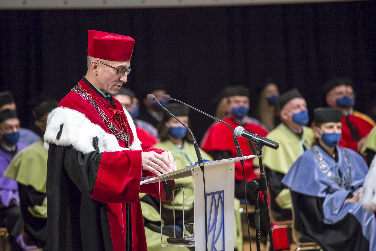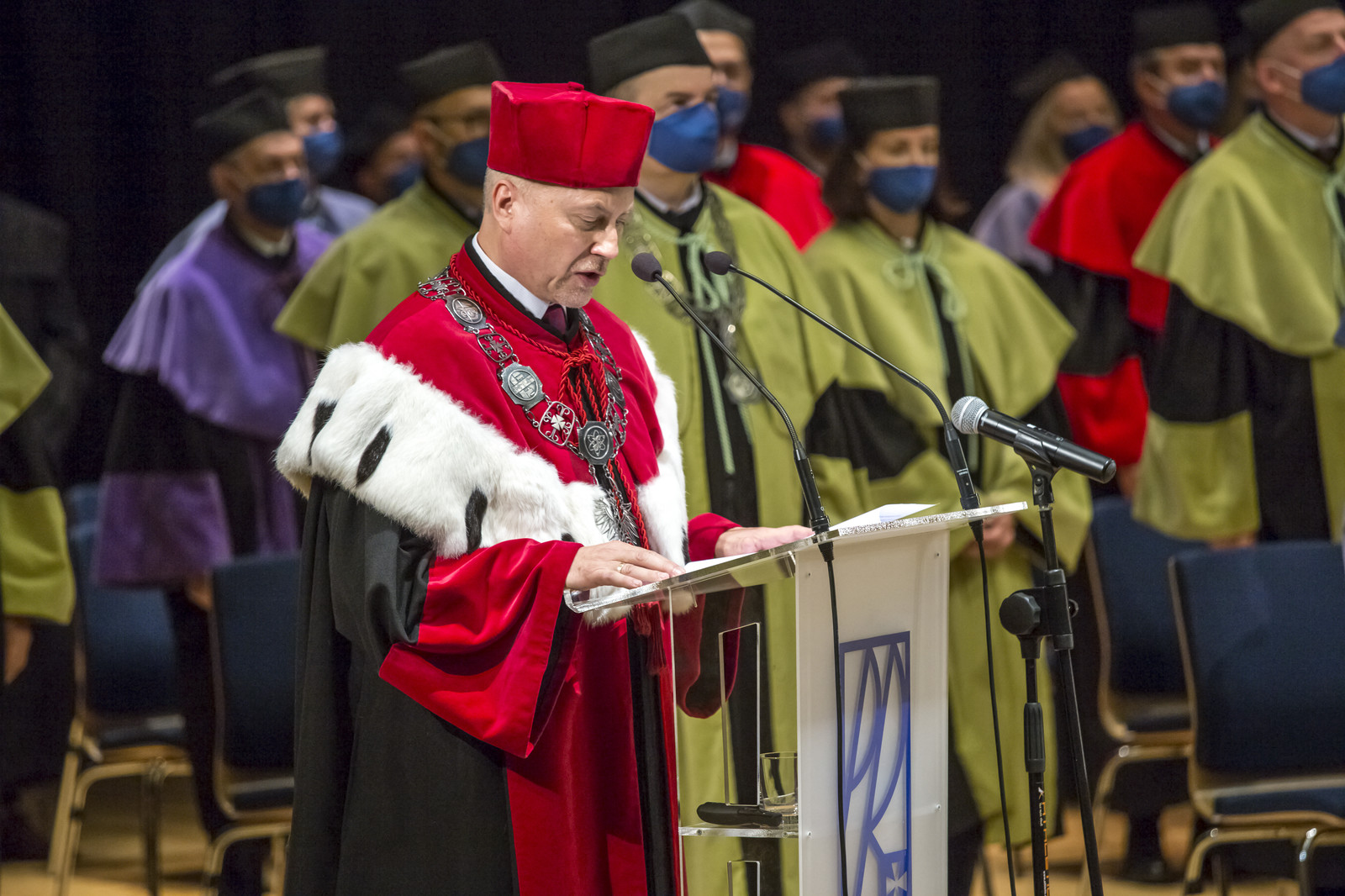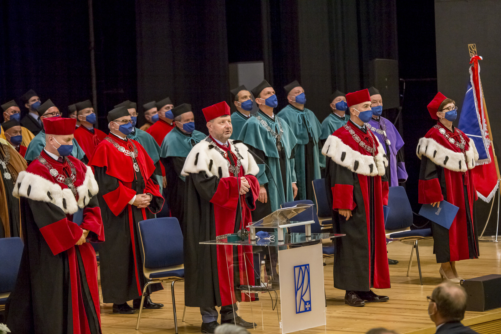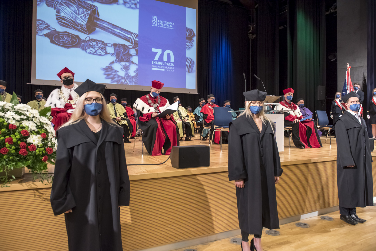Ze względu na sytuację epidemiczną uroczystość inaugurująca jubileuszowy 70. rok akademicki na naszej uczelni odbyła się w warunkach zaostrzonego reżimu sanitarnego z zachowaniem wszelkich środków ostrożności. Pracownicy, studenci i sympatycy naszej uczelni mogli w niej uczestniczyć w relacji na żywo transmitowanej na kanale YouTube, uczelnianym Facebooku i na antenie Akademickiego Radia i Telewizji Centrum.