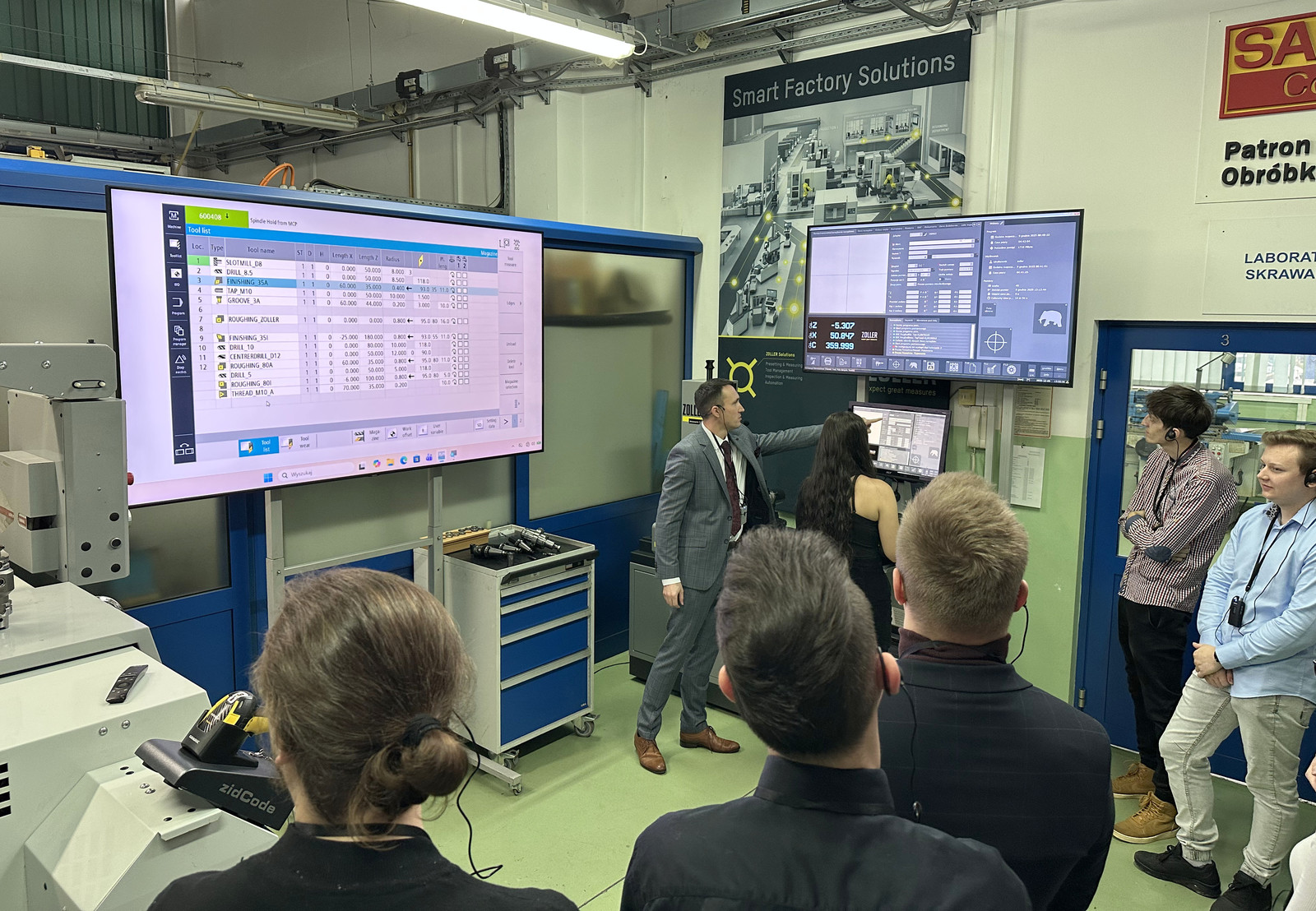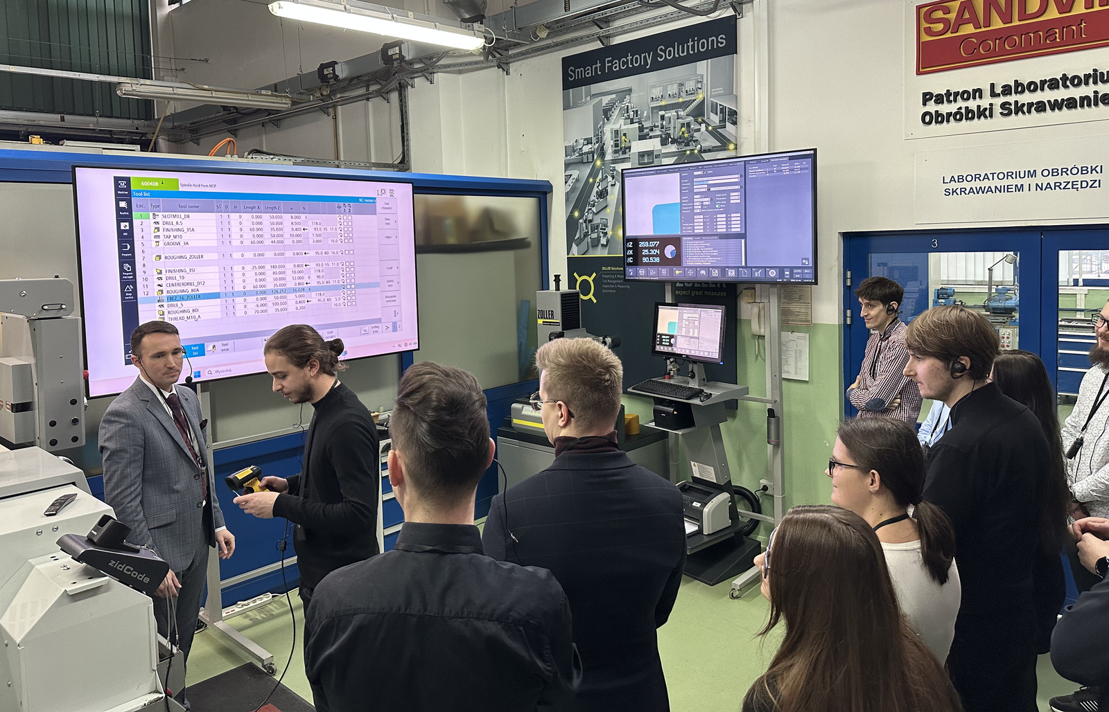 W ramach warsztatów zrealizowano sesje teoretyczne oraz ćwiczenia praktyczne, skoncentrowane na pomiarze geometrii narzędzi skrawających z wykorzystaniem urządzenia ZOLLER smarTcheck 450, stanowiącego integralny element wyposażenia katedry. Tematyka zajęć obejmowała zagadnienia związane z nowoczesnym podejściem do pomiarów i zarządzania narzędziami skrawającymi, w szczególności:
