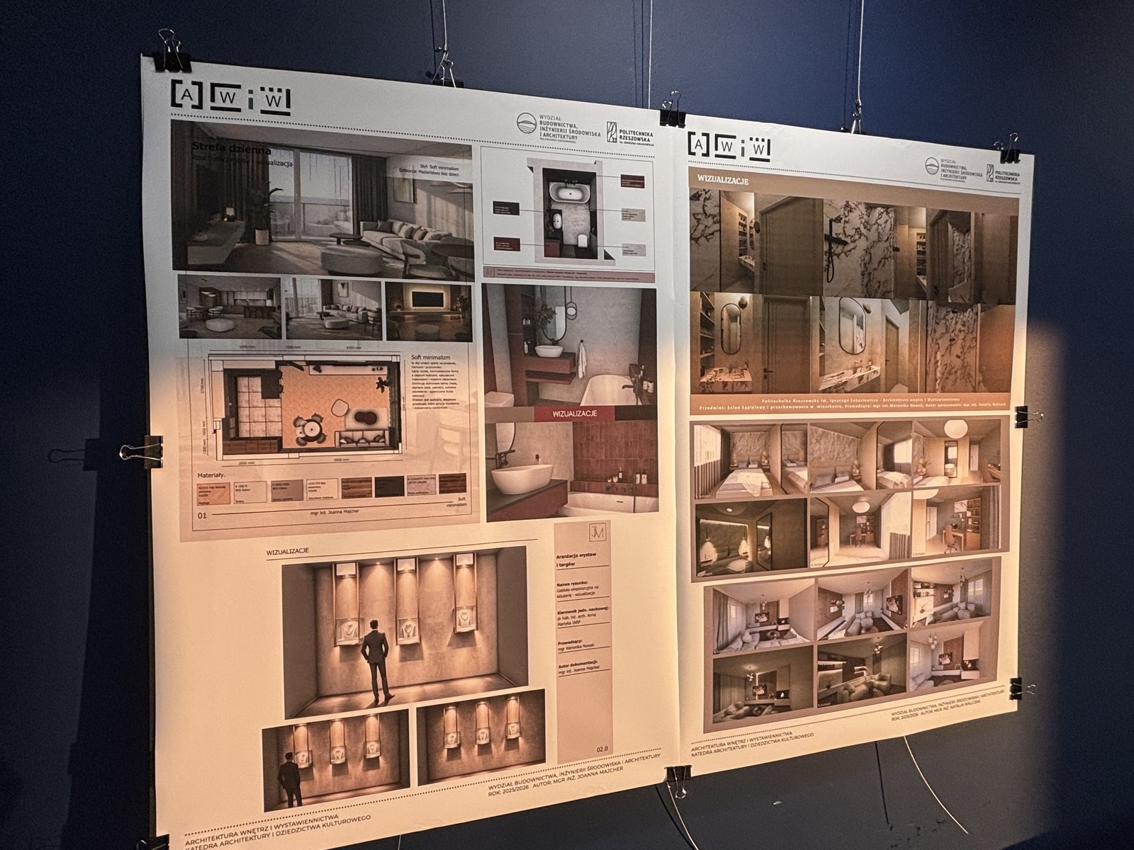 Po oficjalnej części absolwenci wymieniali się refleksjami i doświadczeniami po odbytych studiach, podkreślali wartość zdobytej wiedzy, możliwość rozwoju pod okiem doświadczonych wykładowców oraz praktyczny wymiar zajęć. Uroczystości towarzyszyło otwarcie wystawy prac projektowych absolwentów studiów podyplomowych „Architektura wnętrz i wystawiennictwa”. Ekspozycja ukazała kreatywne podejście do aranżacji wnętrz oraz wystawiennictwa, a także różnorodność stylów i koncepcyjne rozwiązania przestrzenne. Była to doskonała okazja, by zaprezentować owoce kilkumiesięcznej pracy oraz wymienić się spostrzeżeniami na temat aktualnych trendów w architekturze wnętrz.
